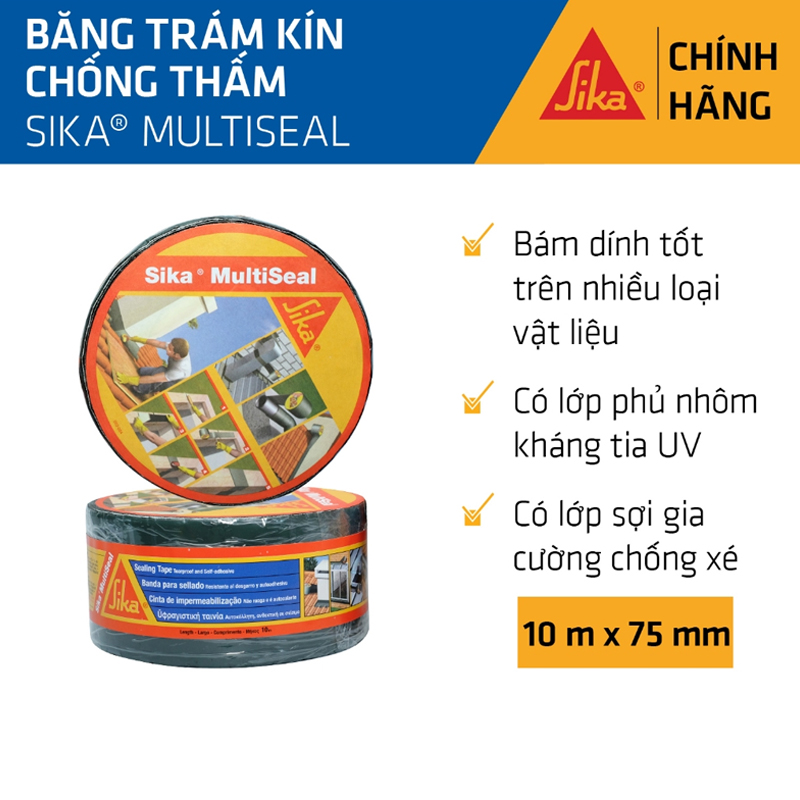 Sika Multiseal là màng băng keo tự dán dính gốc bi tum dùng để chống thấm và ngăn chặn sự rò rỉ bên trong và bên ngoài công trình nhà dân dụng.