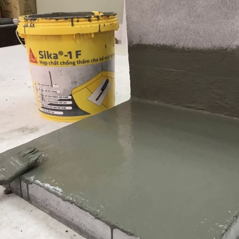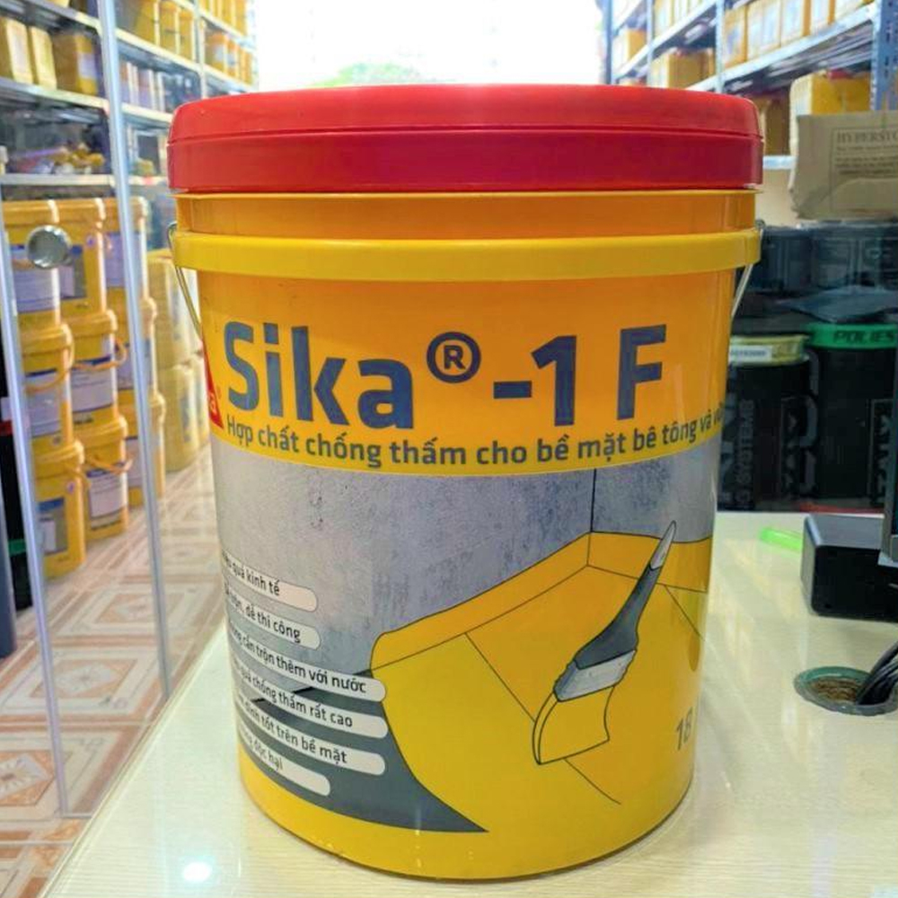 Sika®-1 F hợp chất chống thấm đóng gói sẵn dạng lỏng gồm các loại phụ gia đặc biệt và cốt liệu chọn lọc. Sau khi trộn với xi măng sẽ tạo thành vữa chống thấm dùng để khóa các lỗ rỗng và mao dẫn trên các bề mặt bê tông cũng như bề mặt gốc xi măng.