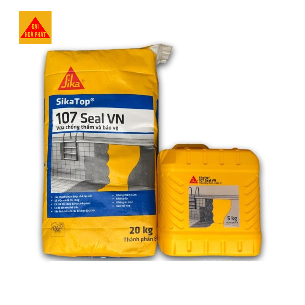 Vữa chống thấm cho độ bám dính cao, khả năng che phủ lớn, lớp chống thấm có độ đàn hồi nhẹ, chịu được áp lực nước mà không ngấm nước. Sikatop 107 seal VN dùng chống thấm bên trong và bên ngoài nhà, trong công tác sửa chữa và bảo vệ chống sương giá, các tác nhân khử băng.